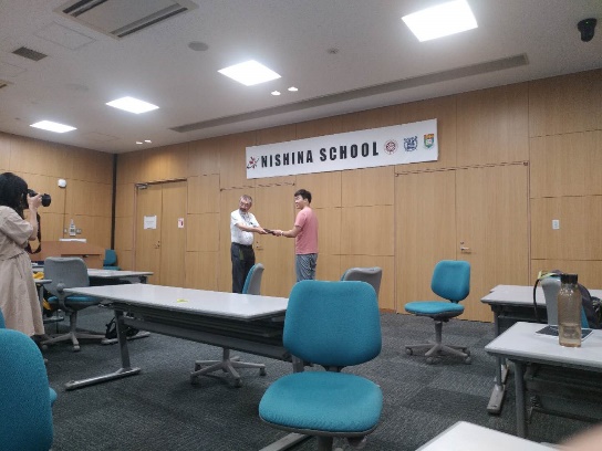 本次第11届Nishina School从7月23日开始至8月3日结束。首日上午,在日方负责人Motobayashi先生的主持下,东道主的日方Hideto Enyo教授介绍了Nishina School和RIKEN的建立发展历程、工作内容、人员状况、科研设备及成果等。来自北京大学,首尔大学,香港大学以及美国菲利普斯·埃克塞特学院的师生也对参赛学生自己以及学校的概况进行了介绍。