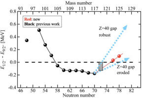 当原子核的核子数(质子或中子)为2,8,20,28,50,82,126的时候,原子核性质会表现出格外的稳定性,这些数字被称之为原子核的“幻数”。Mayer 和 Jensen等人利用包含了自旋轨道耦合的壳模型对幻数进行了成功的解释,他们开创性的工作被授予1963年诺贝尔物理学奖。随着对远离稳定线原子核性质的研究,人们发现在某些区域原子核壳结构发生了显著变化,与传统壳模型的描述很不一致。为此人们给出了很多理论解释,其中张量力作为新壳演化的重要原因,近些年成功地解释了核素图中多个质量区域新的壳演化规律,受到人们的广泛关注。