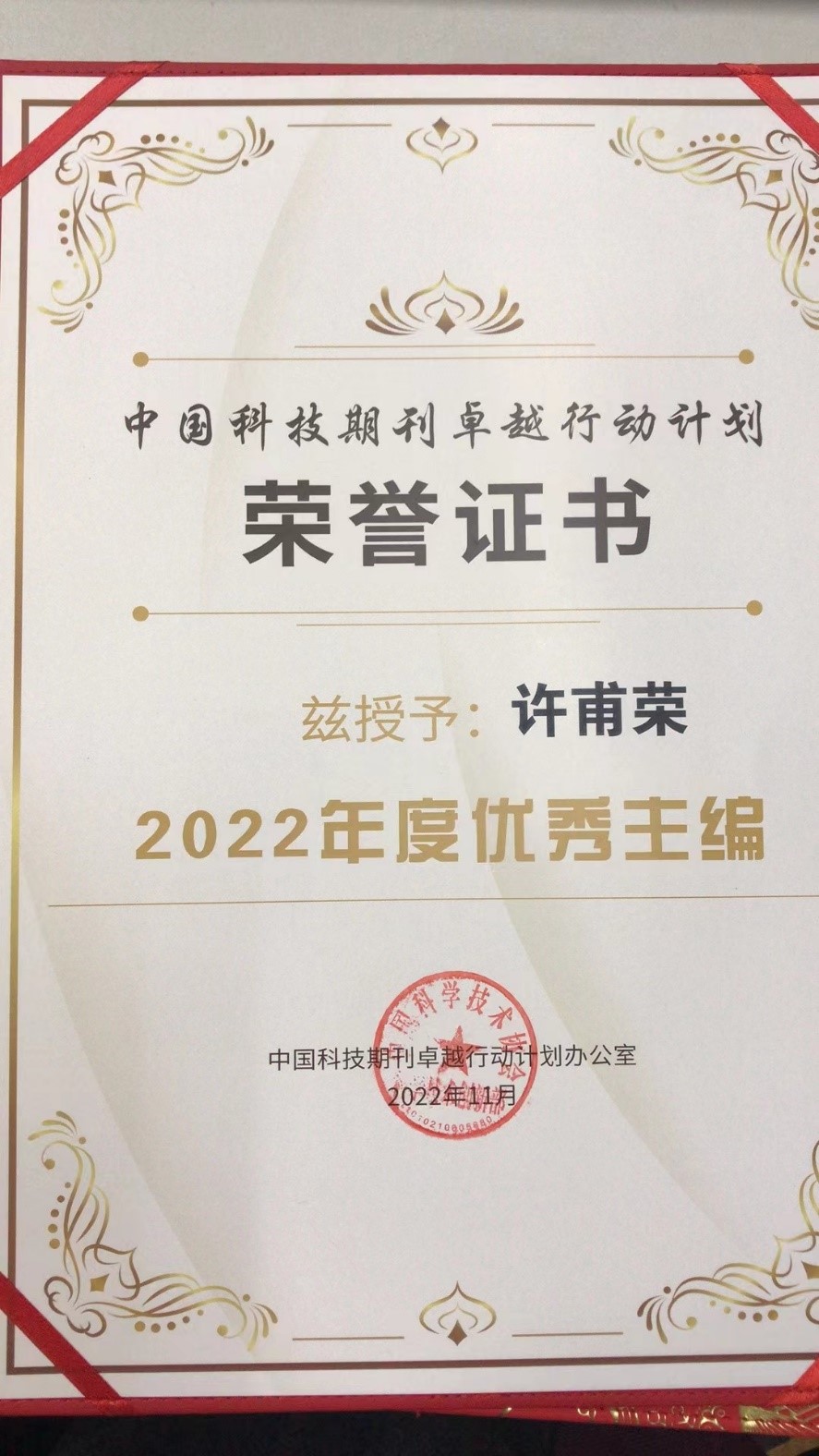 许甫荣教授入选2022年度中国科技期刊卓越行动计划选育高水平办刊人才子项目