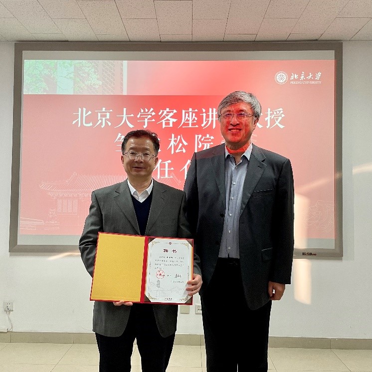 高原宁院长为邹冰松院士颁发北京大学客座讲席教授聘书