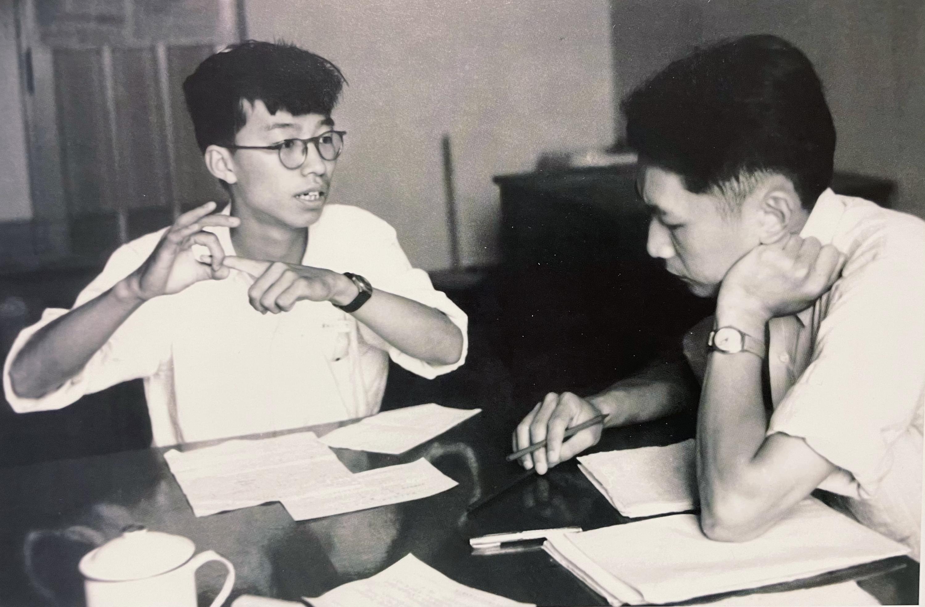 1953年7月,在东北人民大学对陈佳洱(左)进行“原子物理学”课程口试