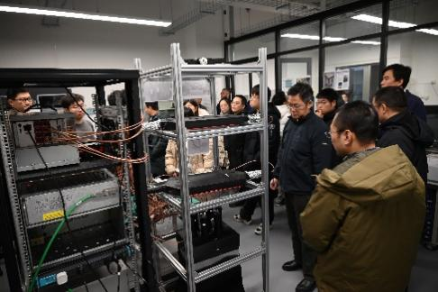 活动中技物系支部老师参观了粒子核天体所实验室,就仪器设备、技术细节等与物理系师生进行了交流和探讨。