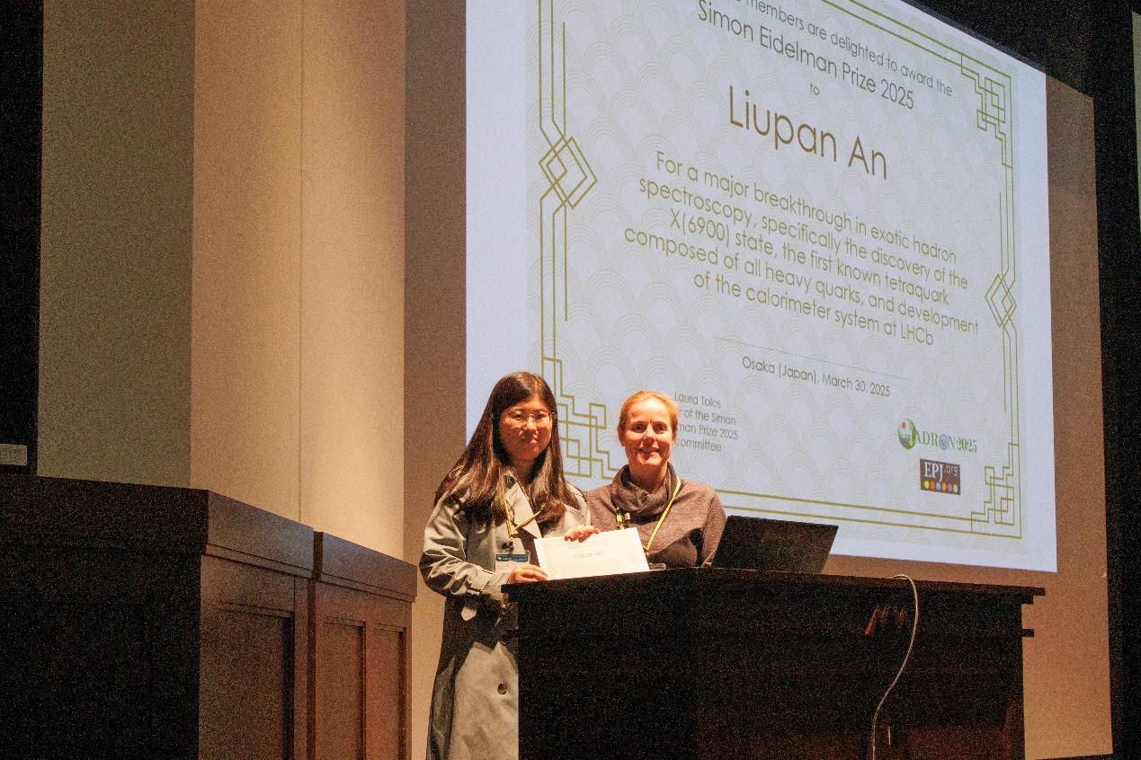2025年3月30日,在日本大阪召开的第21届强子谱学与结构国际会议上,北京大学物理学院技术物理系助理教授安刘攀获2025年度Simon Eidelman奖,以表彰其因发现全粲四夸克态X(6900)而对奇特强子谱学研究带来的突破,以及在欧洲核子研究中心大型强子对撞机底夸克实验(LHCb)量能器系统研发工作中的突出贡献。全粲四夸克态X(6900)是首个完全由重味夸克组成的奇特强子态,为理解低能区强相互作用开辟了新的研究平台。